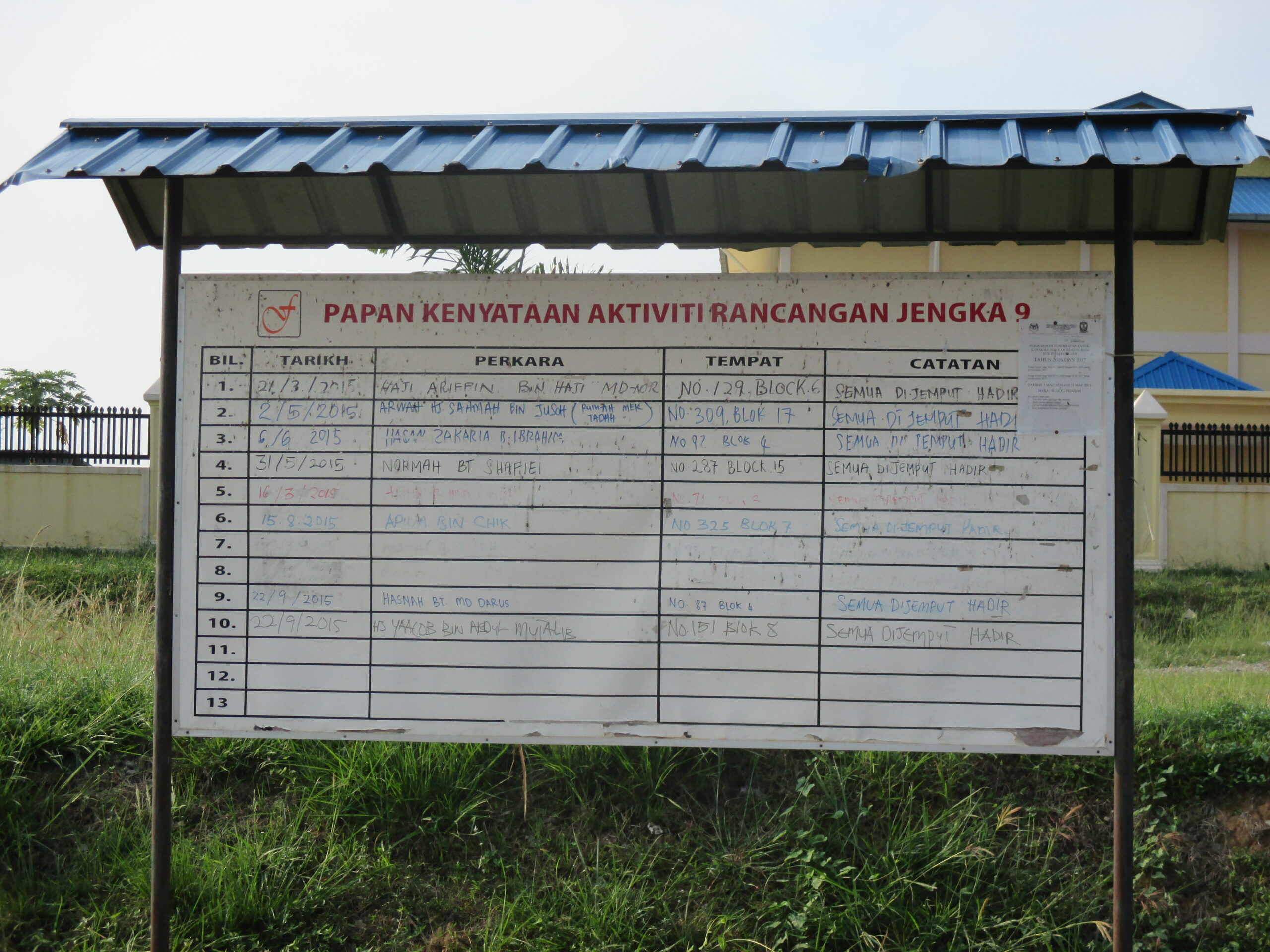 Papan info komuniti adalah salah satu cara untuk menyampaikan maklumat, aktiviti dan berita kepada penduduk Felda Jengka 9 mengenai aktiviti kerohanian dan latihan/kursus